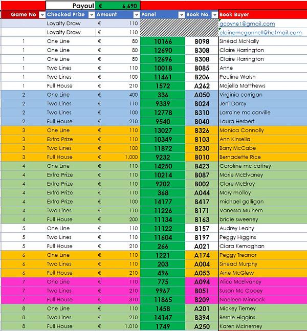 To claim your prize email info@seansbingo.com from the email address that purchased the winning book with your 22 Digit IBAN to claim your prize.