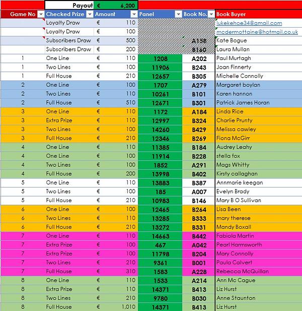 To claim your prize email info@seansbingo.com from the email address that purchased the winning book with your 22 Digit IBAN to claim your prize.