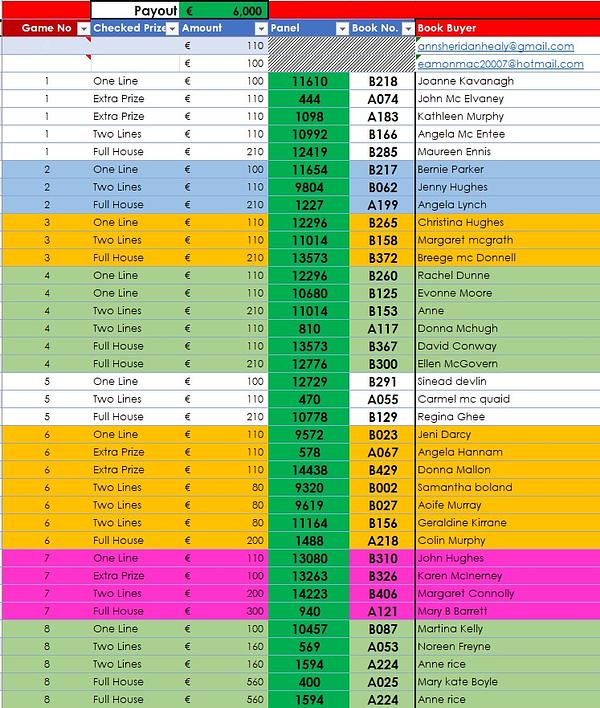 To claim your prize email info@seansbingo.com from the email address that purchased the winning book with your 22 Digit IBAN to claim your prize.